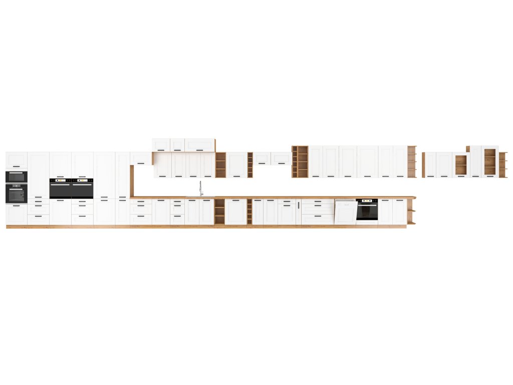Horní dveřová skříňka ze systému LUNA BÍLÁ / DUB ARTISAN, vyrobená z kvalitního lamina s dekorem DUB ARTISAN a MDF desek v matné bílé barvě, je ideální pro moderní kuchyňské...