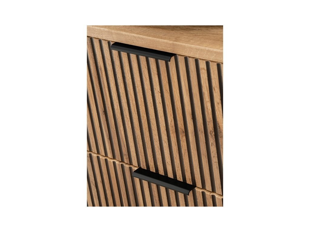 Koupelnová sestava XILO SKY 120D A4 je dokonalým propojením funkčnosti, moderního designu a přírodního vzhledu. Kolekce XILO vyniká výraznou texturou dubového dekoru WOTAN doplněného o černé matné detaily, které vytvářejí elegantní kontrast a dodávají prostoru lehký industriální nádech.