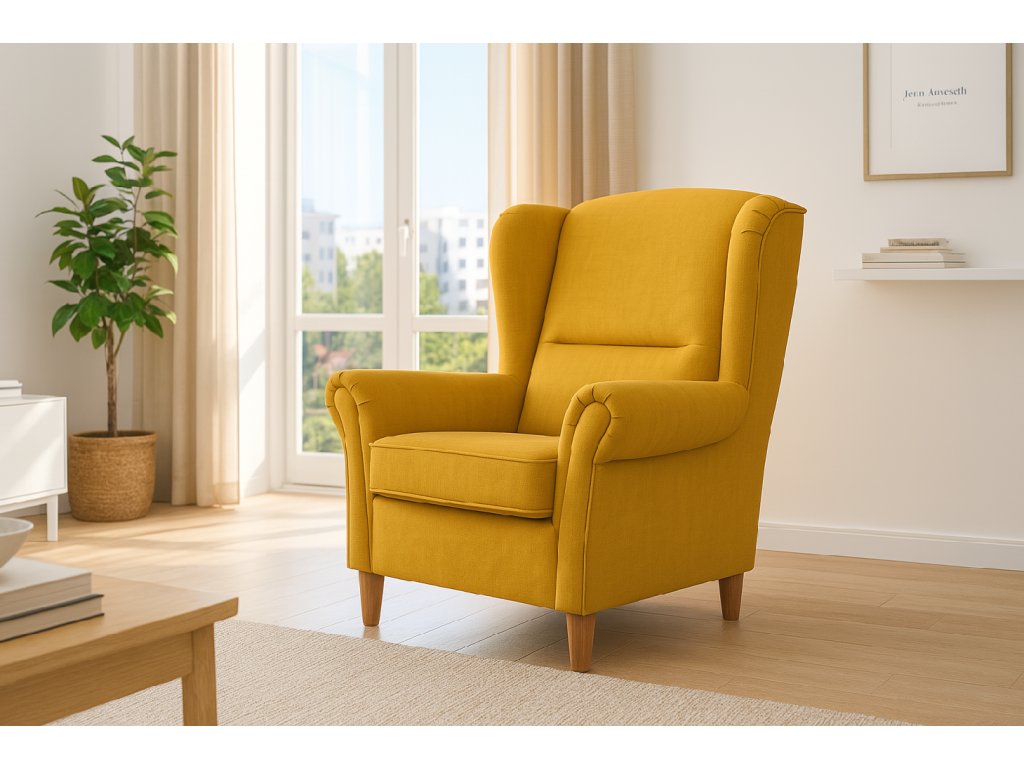Na výběr máte širokou paletu potahových látek a několik odstínů dřevěných nožek, takže si křeslo snadno přizpůsobíte svému interiéru.