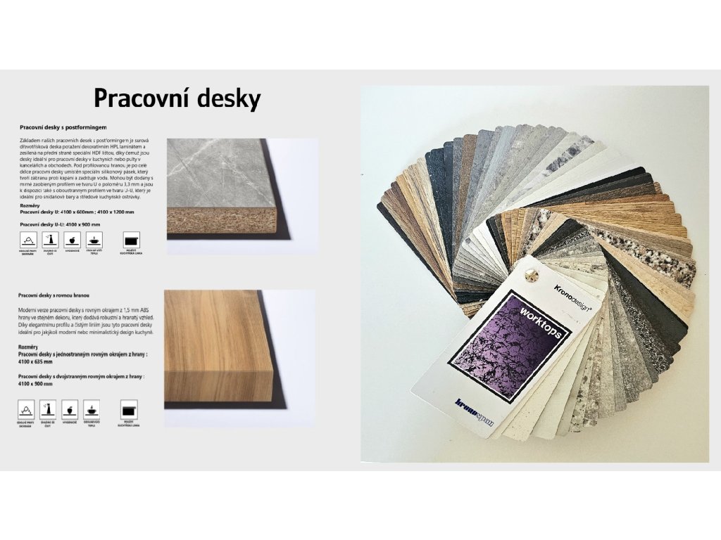 Kuchyňská linka ENGLAND vyniká jednoduchou elegancí, čistými liniemi a nadčasovým vzhledem, který se snadno sladí s moderním, industriálním i klasickým interiérem. Na výběr máte ze široké škály barevných dekorů, a to jak v horizontálním, tak vertikálním směru – ať už preferujete jemné neutrály nebo výrazné dřevodekory. Všechny varianty působí elegantně a díky směru dekoru dokáží prostor opticky rozšířit nebo zútulnit.