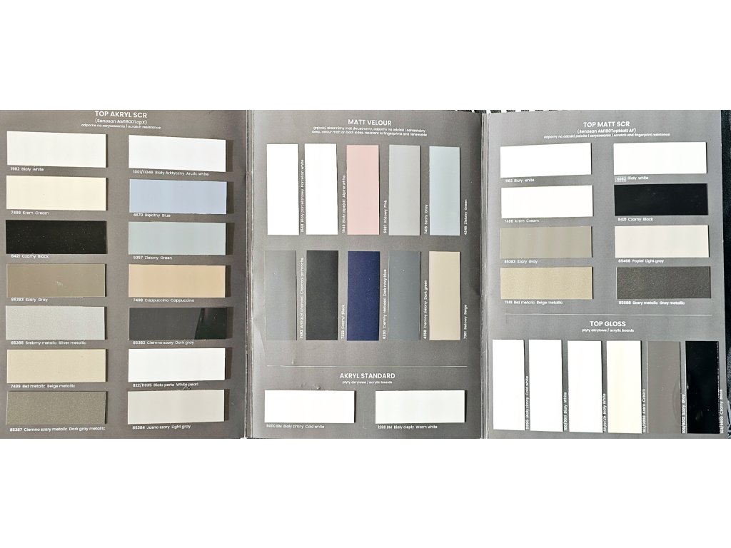 Minimalistický design bez zbytečných detailů umožňuje snadné začlenění do různých interiérů, od moderních po skandinávské. Díky široké nabídce barevných dekorů si snadno vytvoříte kuchyň, která dokonale ladí s vaším stylem a prostorem. Každý detail, od hladkých ploch až po precizní zpracování, podtrhuje důraz na kvalitu a funkčnost.