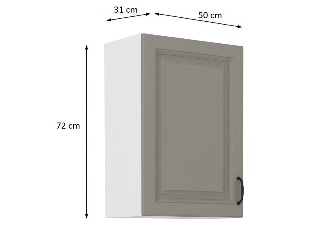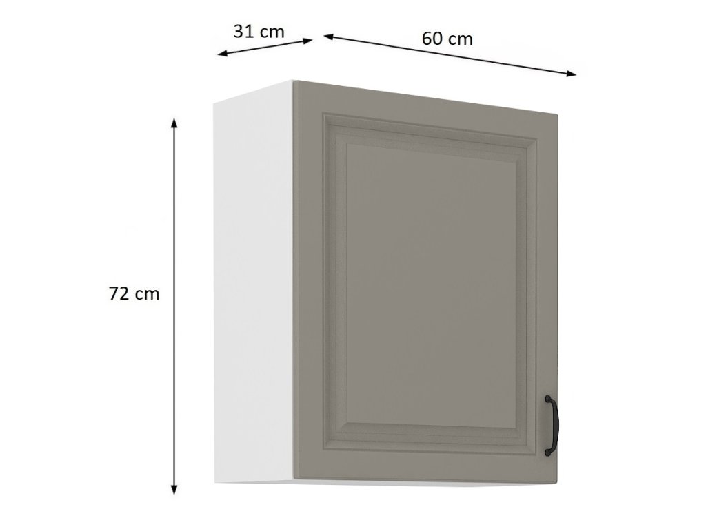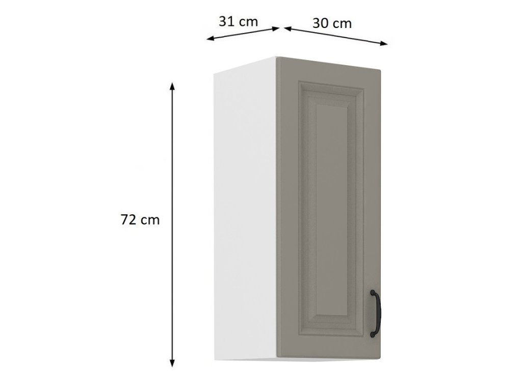 Horní dveřová skříňka ze systému STILO CLAYGREY / BÍLÝ MAT, vyrobená z kvalitního lamina s dekorem bílý mat a MDF desek ve světle šedé barvě, je ideální pro moderní kuchyňské...