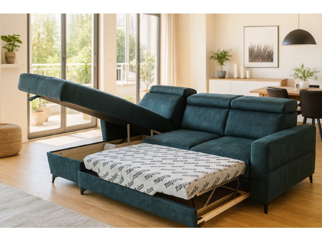 Tato moderní rohová sedací souprava je ideálním řešením pro všechny, kteří hledají elegantní vzhled, prostorné sezení a všestranné využití v jednom. Díky promyšlené konstrukci, prvotřídním materiálům a možnosti plnohodnotného spaní se stane nejen ozdobou vašeho interiéru, ale i praktickým pomocníkem při každodenním provozu domácnosti.