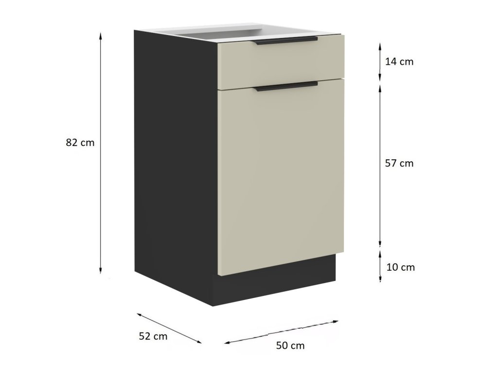 Spodní dveřová skříňka s šuplíkem ARONA ČERNÝ MAT / KAŠMÍR 50 D 1F 1S BB