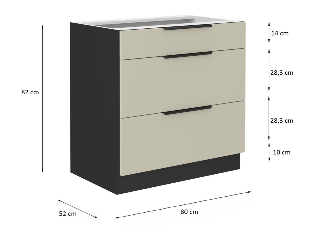 Spodní šuplíková skříňka ARONA ČERNÝ MAT / KAŠMÍR 80 D 3S BB
