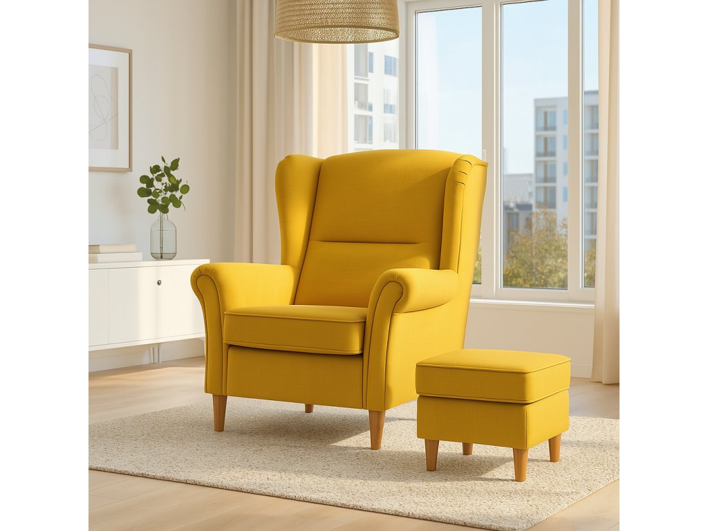 Křeslo s taburetem KING přináší dokonalé spojení elegance, pohodlí a klasického stylu. Vysoká zádová opěrka křesla ve stylu ušáka spolu s měkkým taburetem vytváří ideální...
