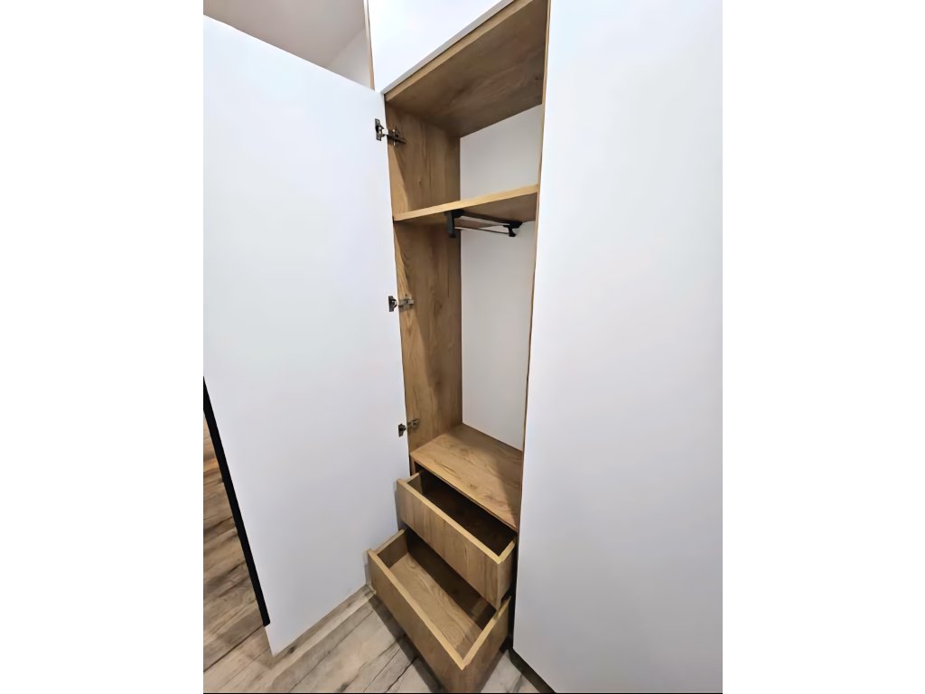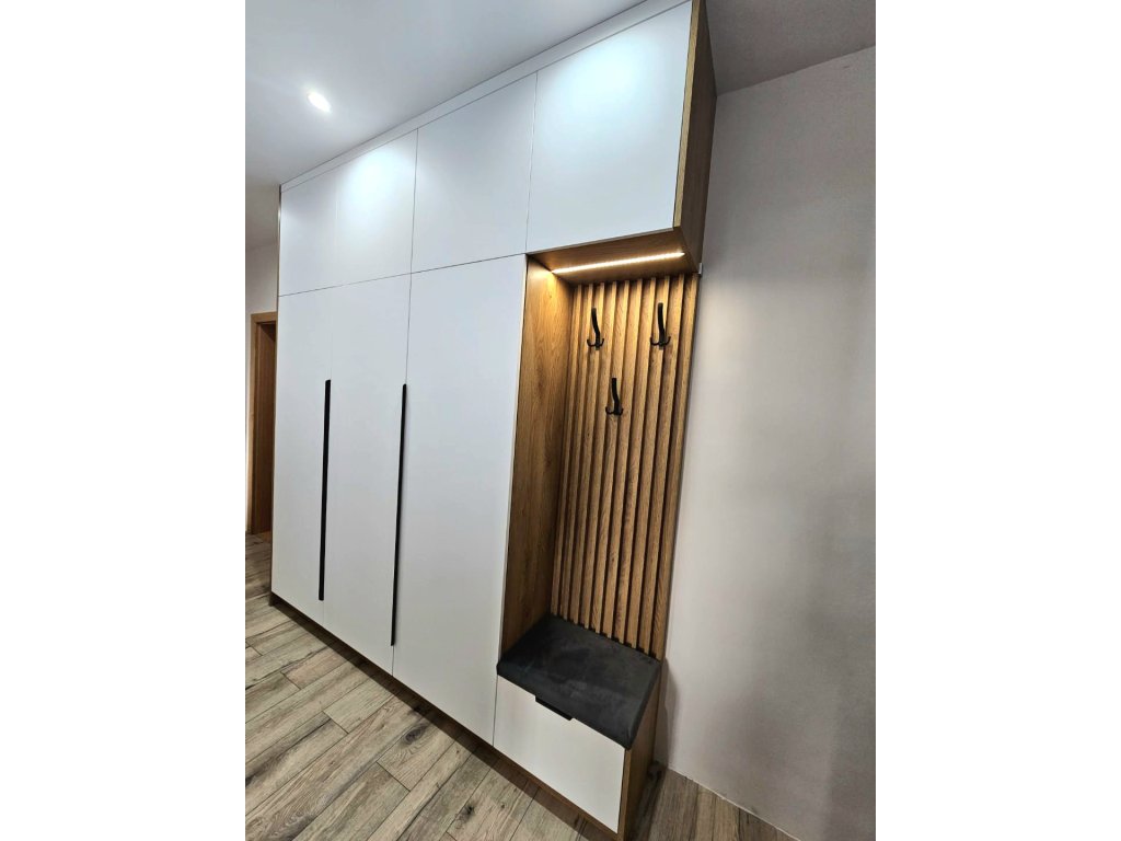 Každý den začíná pohodlněji, když máte vše přehledně uspořádané a snadno dostupné. Už žádné zbytečné hledání nebo kompromisy. Díky preciznímu truhlářskému zpracování a použití kvalitních materiálů máte jistotu, že vám naše vestavěná skříň na míru vydrží dlouhá léta a stane se spolehlivým partnerem vašeho života.