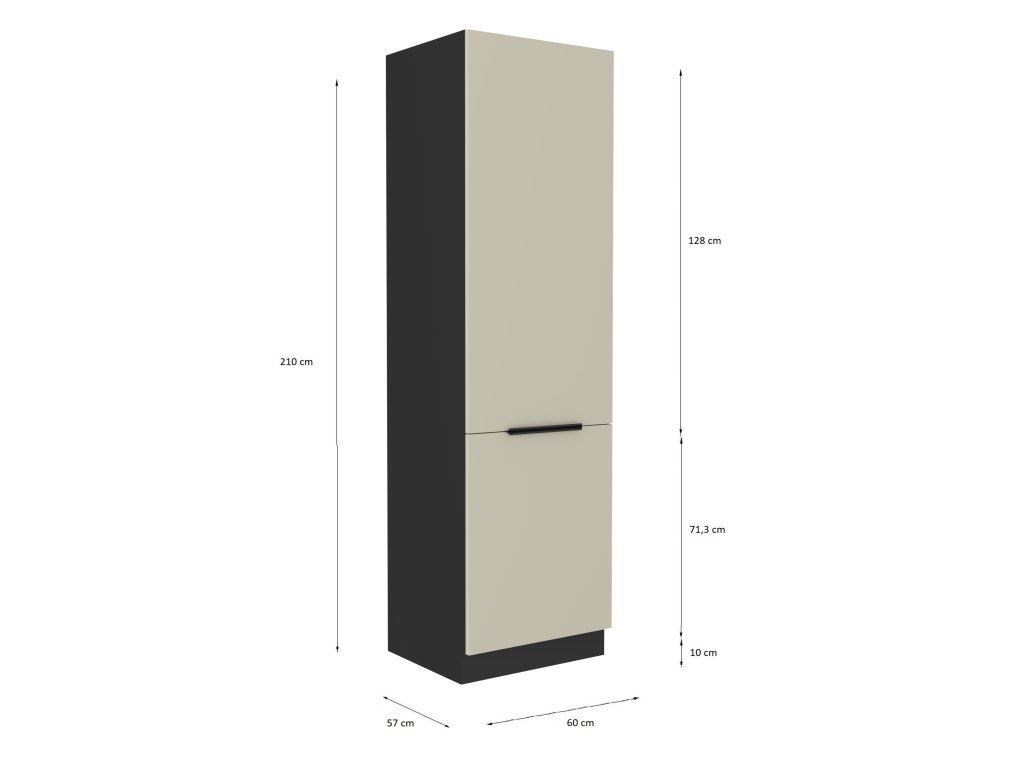 Vysoká skříň na vestavnou lednici ARONA ČERNÝ MAT / KAŠMÍR 60 LO-210 2F