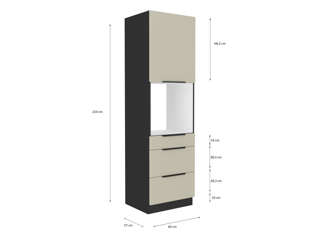 Vysoká skříň na vestavnou troubu s šuplíky ARONA ČERNÝ MAT / KAŠMÍR 60 DPS-210 3S1F
