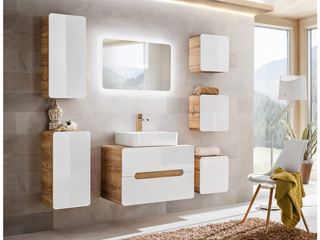 Skříňka pod umyvadlo ARUBA WHITE 829 2S 80CM – Bílý lesk / Dub Zlatý